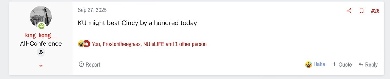 Notice you predictably had no comment on your KU-Cincinnati prediction.