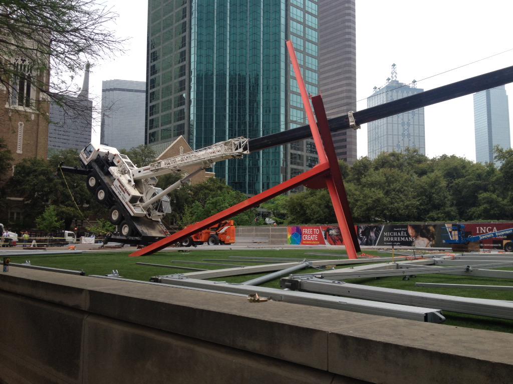 A crane has fallen over on to the Dallas Museum of Art....