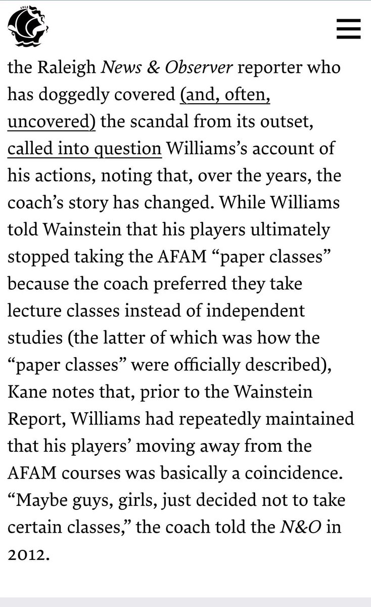 The classes STARTED with Dean. He was instrumental in the formation of the AFAM dept at unx. WTF does a ball coach have to do with curriculum? Not a damn thing unless it’s self-serving...which it was. Dean coached basketball. That’s all he did. He was no saint. And unx wasn’t nearly as open as you suggest either. Martin was a dog-n-pony show. The ex-guvna has since retracted his initial findings. unx has spared no effort trying to discredit Wainstein. unx did what unx does. Image is everything to unx so they spent millions in legal fees and PR. Wanna be open? Let’s see those transcripts. Redact the names and publish ‘em. Recalculate the GPA’s and see who was ( and who WASN’T! ) eligible. unx being “transparent” is every bit as big of a myth than the “carolina way.”