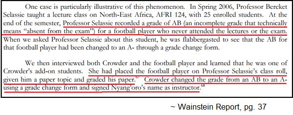 Though athletes account for 1% of the student body, 50% of the bogus class enrollment were athletes. Nothing to see here. Move along.