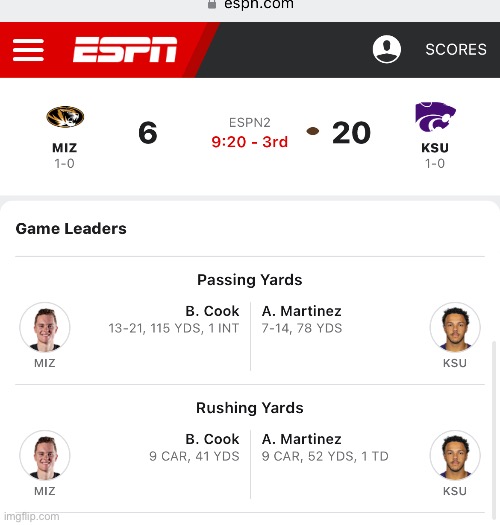 Same AM we saw here. KSU has a competent defense, unlike NU