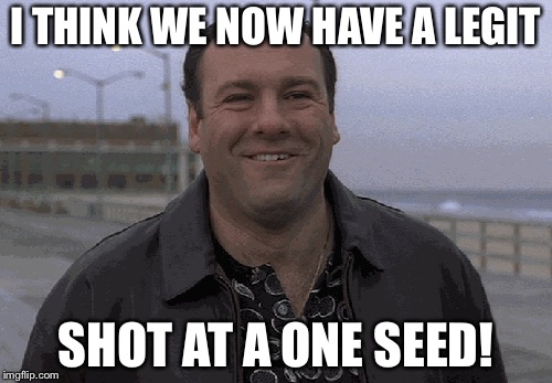 That being said, they're gonna lose to us next weekend. That should move us up to the 1 seed line.