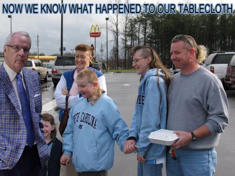 LOL. I can just see that. Maybe he wears it at the Wal-mart unc gear signings. That will bring them in. Calling dirt. How about a photo shop with our favorite tar heel with the mullets and hof coach roy williams wearing that jacket in some way. OFC