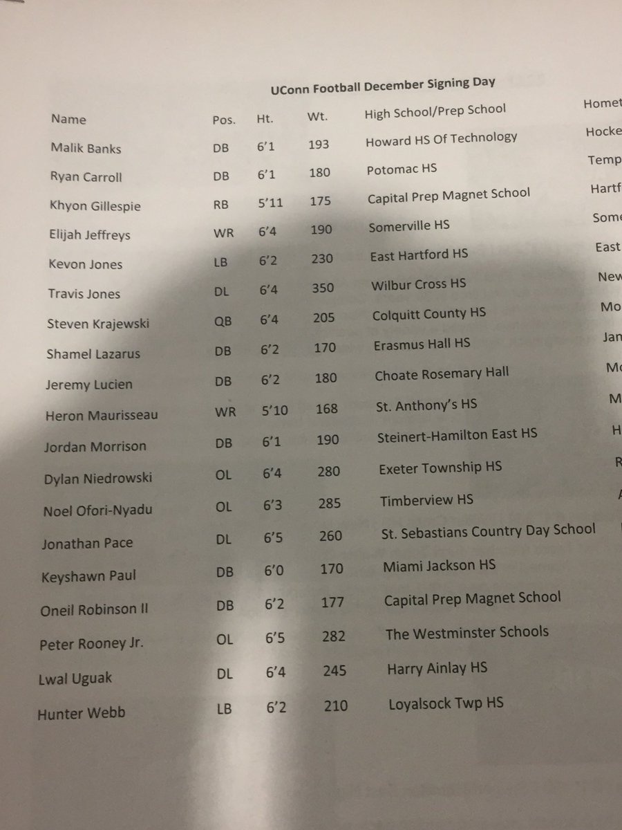 The first letter of intent is in and it's from OL Travis Jones out of Wilbur Cross (CT).
