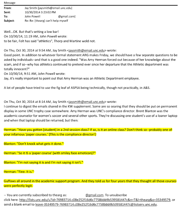 Nothing to see here folks, just an email from an athletic academic counselor to the UNC head Compliance Director ensuring a player on the brink is able to get an "Infamous paper course" in oder to stay eligible.