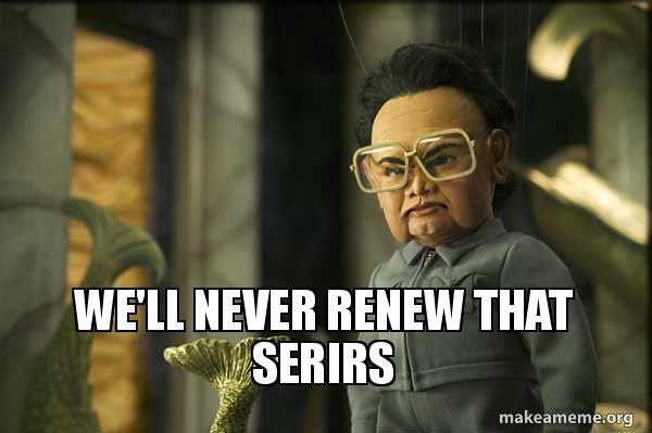 Why would we?So are we going to pick our series back up here in a few years?